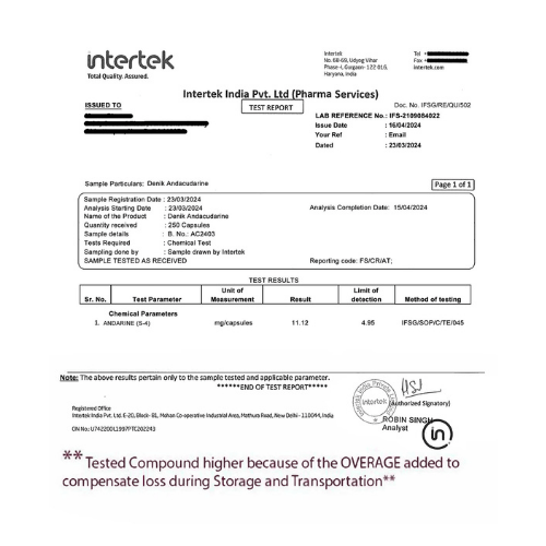 Denik Pharma Andacudarine | Andarine S 4 commonly known as Andarine (S-4), is a well-recognized Selective Androgen Receptor Modulator (SARM) developed for advanced research and laboratory applications. Manufactured with precision and strict quality control, ANDACUDARINE reflects Denik Pharma’s commitment to purity, consistency, and scientific reliability.