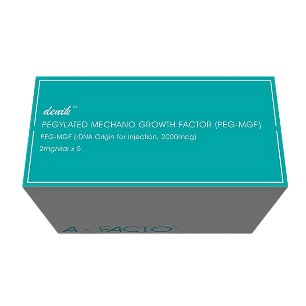 Denik Pharma — MECHA-FACTO (PEG-MGF / IGF-1Ec, 2 mg) is a long-acting, modified peptide designed to support muscle repair, regeneration, and anabolic signaling. The PEGylated form offers prolonged activity compared with traditional MGF, making it a valued tool in research and medically supervised protocols targeting recovery and tissue maintenance. Side effects are generally mild and transient, but careful medical oversight is recommended to ensure safe and effective use.