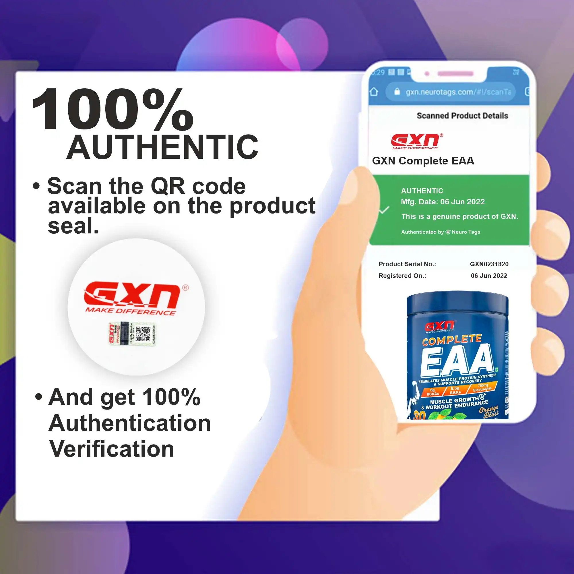 Each serving of GXN Complete EAA provides all Essential 9 Amino Acids and contains BCAAs in scientifically documented 2:1:1 ratio that helps in muscle growth and after workout recovery.