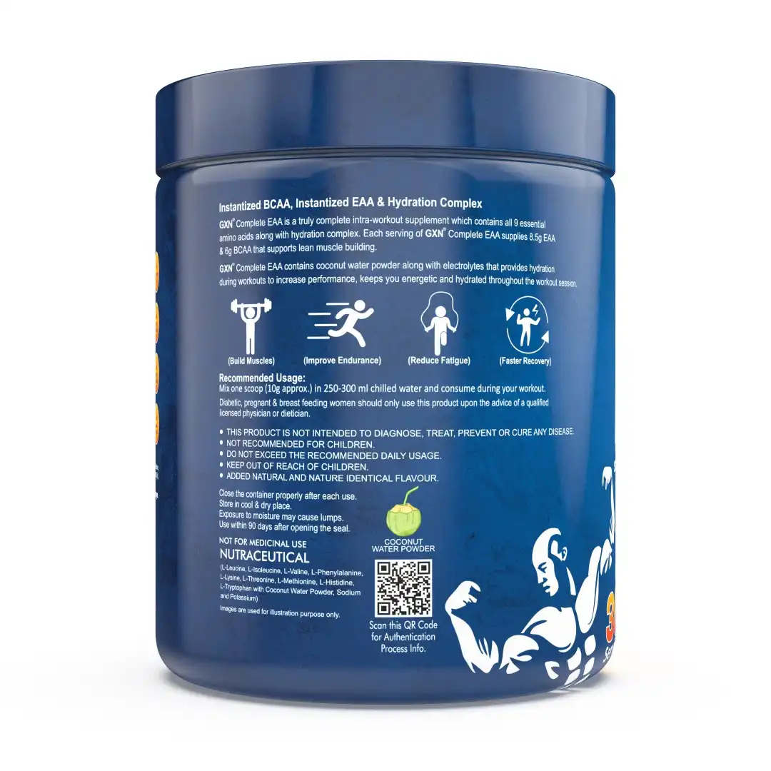 GXN Complete EAA is the best Intra-Workout supplement currently available in the market. This Intra-Workout supplement is formulated with all 9 essential amino acids with coconut water powder, electrolytes, minerals and vitamins that provides necessary hydration during workouts, elevates lean muscle growth and speed-up after workout recovery.