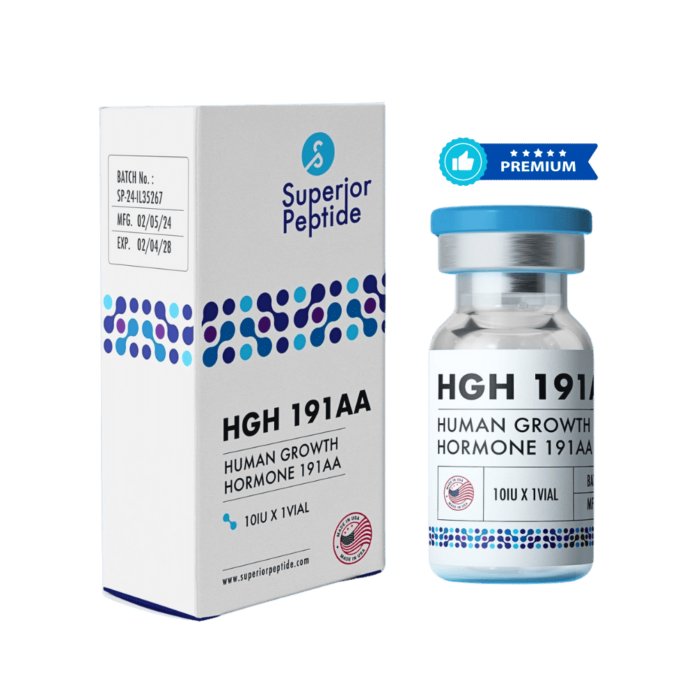 Superior Peptide HGH 191AA is a full-length 191 amino acid Human Growth Hormone (HGH) designed to closely match the natural structure of endogenous HGH. It is widely researched for its role in supporting muscle development, fat metabolism, recovery, and overall vitality. Known for high purity and stability, HGH 191AA is favored by athletes and researchers seeking consistent performance and quality.